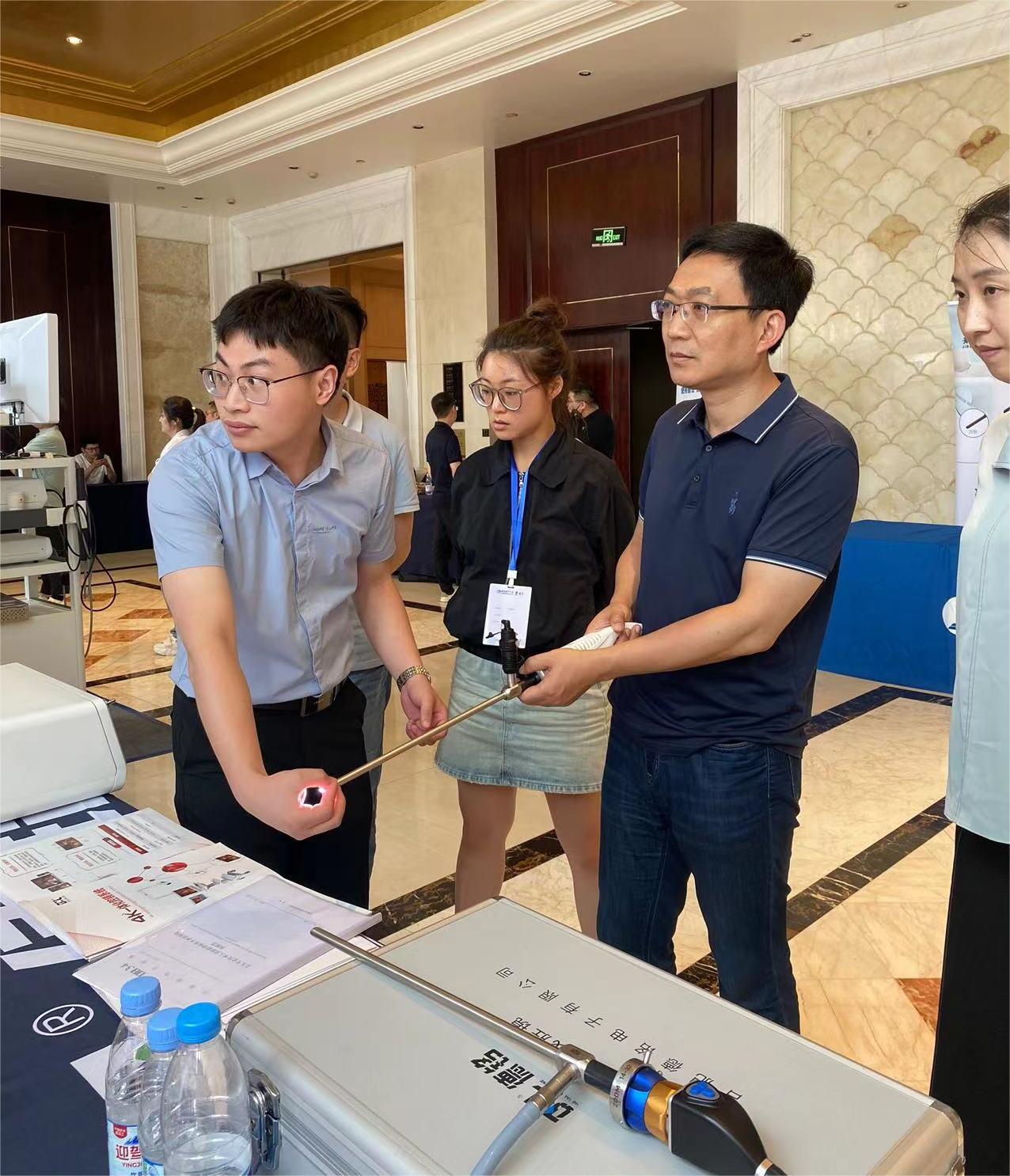 大会期间,德铭携智能无线腔镜、4K一体化腔镜系统全程精彩亮相,并设置《卫生专业技术人员职称评审用手术视频技术规范》政策咨询服务台。中国科学技术大学附属第一医院黄强教授、皖南医学院附属弋矶山医院王小明教授等众多外科领域医学大咖亲临德铭展位,与工作人员细致交流展示产品性能及临床应用前景,并主动操作试用。其中,职称评审新通道咨询服务台,现场咨询的医师络绎不绝,在场医师均表示此《规范》的出台是职称评审创新之举,对自身未来职业发展具有重要促进作用。