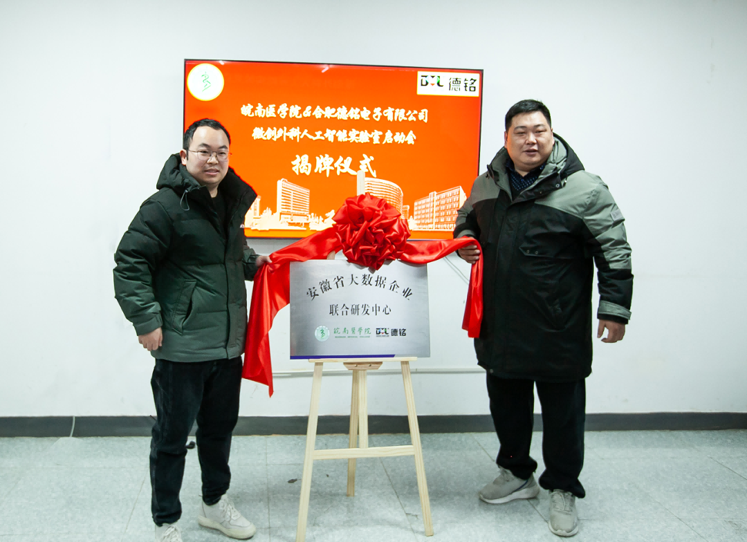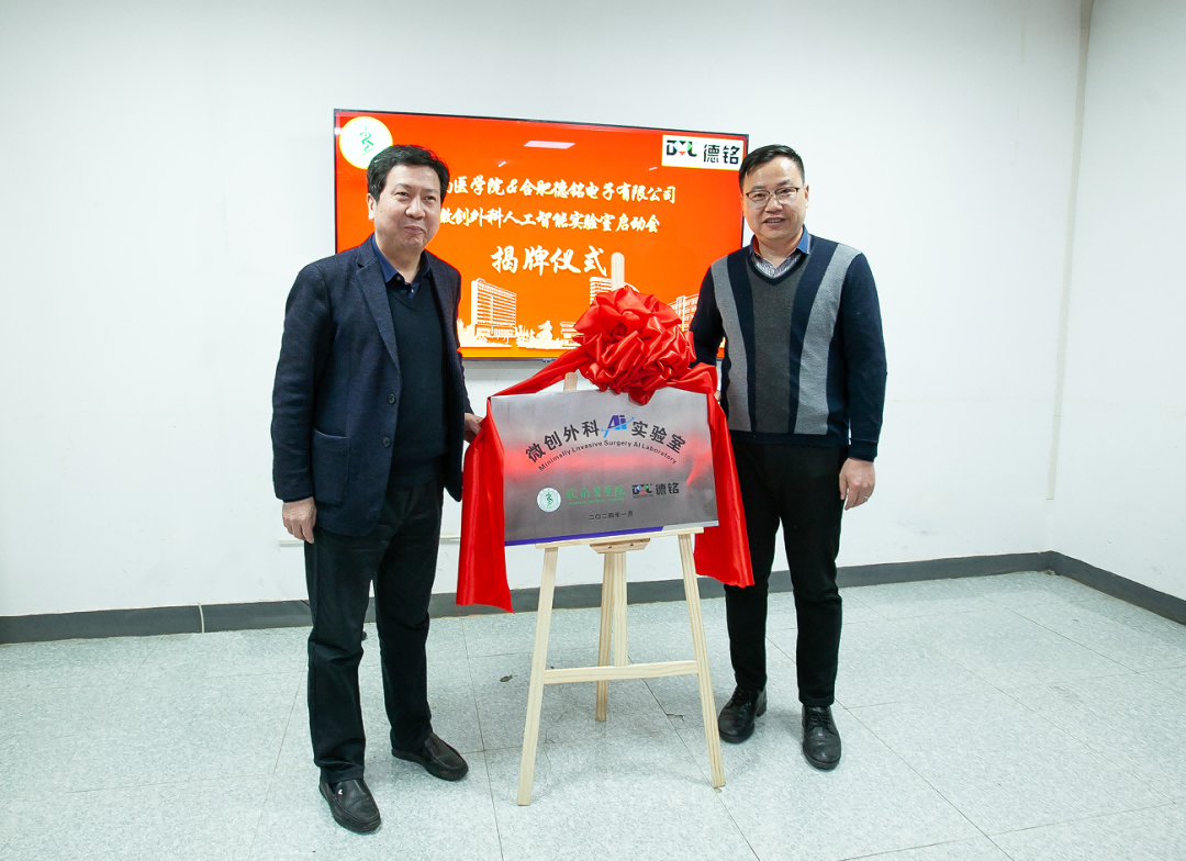 为贯彻落实习近平总书记重要讲话重要指示精神及《中华人民共和国科学技术进步法》,大力推进科技创新及成果转化,皖南医学院与德铭电子联合创建“微创外科人工智能实验室”,于2024年2月3日在皖南医学院第二附属医院进行了签约及揭牌仪式。